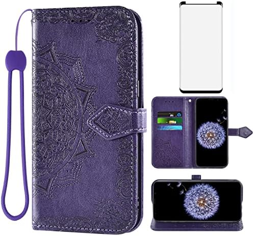 Asuwish Compatible With Samsung Galaxy S9 Plus Wallet Case Tempered Glass Screen Protector And Leather Flip Cover Card Holder Cell Phone Cases For Glaxay S9 9s 9 S 9 9plus S9plus Women